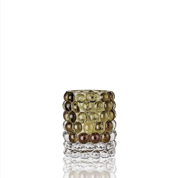 Discover the exquisite beauty and artistry of the Olive Bubble Vase. Created by skilled glassblowers, each lamp boasts a one-of-a-kind optic pattern and stunning illumination.