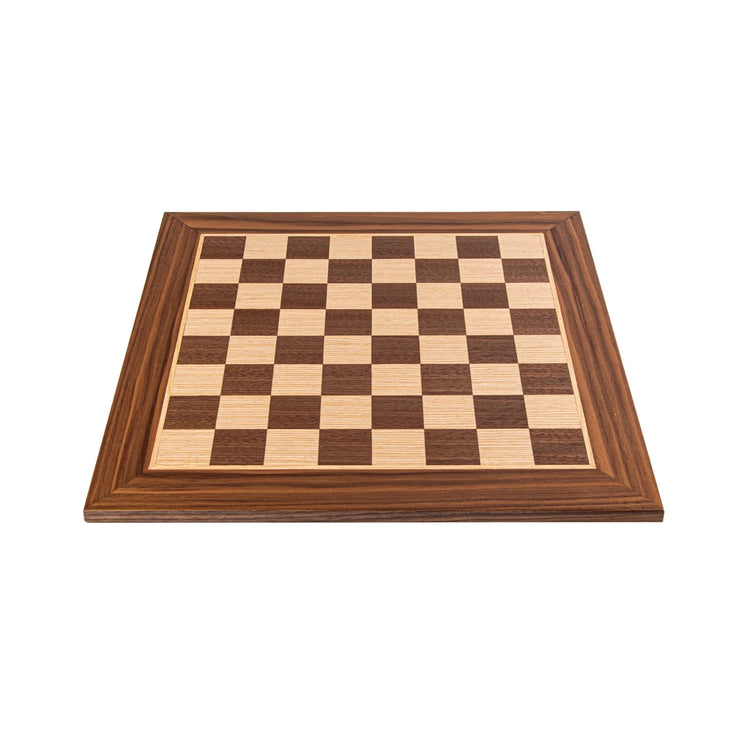 Handmade in Greece using quality Walnut Wood and Oak veneer, this board will compliment any modern household interior. This veneered Chessboard is 15mm thick and has a satin finish. It is ideal for king's height 8.5cm.