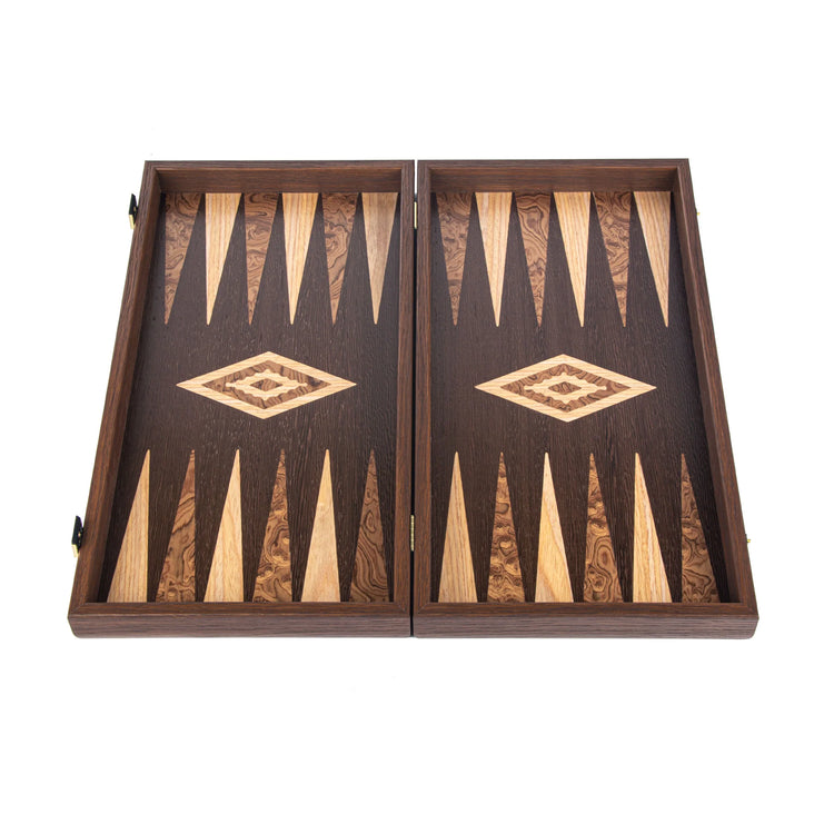 Whether you're looking for a fun family activity or a sophisticated addition to your game collection, the Wenge & Walnut Burl Backgammon Set from Manopoulos is a perfect choice.