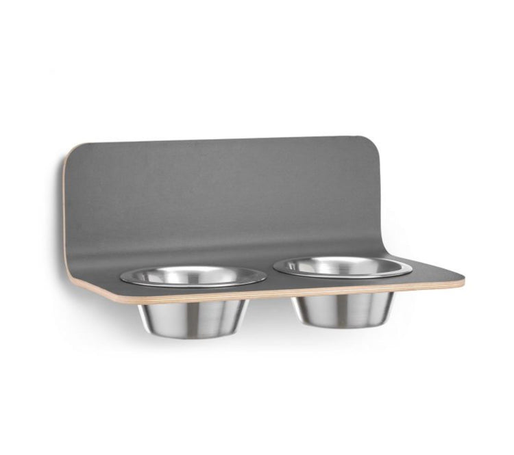 Thanks to a clever sliding system, the Arco Dog Feeder can be removed and cleaned at any time. The curved L-shaped body also protects your wall from splashes and dirt while allowing you easy access to clean up any mess under the bowls.