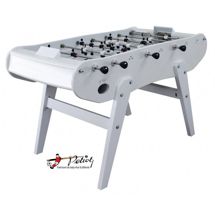 The Shiny White Lacquer Family Foosball Table is a white mirror like football table.