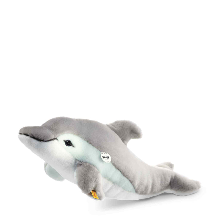 Cappy dolphin is a cute grey dolphin teddy bear from Steiff. Made of cuddly soft woven fur makes a perfect friend for playing and cuddling, offers a great tactile experience, suitable from birth.