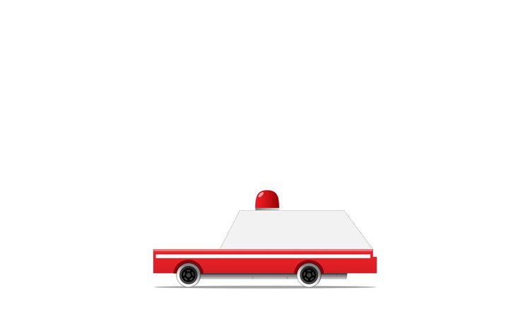 Der candycar Krankenwagen ist ein Mini-Auto im charmanten rot-weißen Vintage-Design.