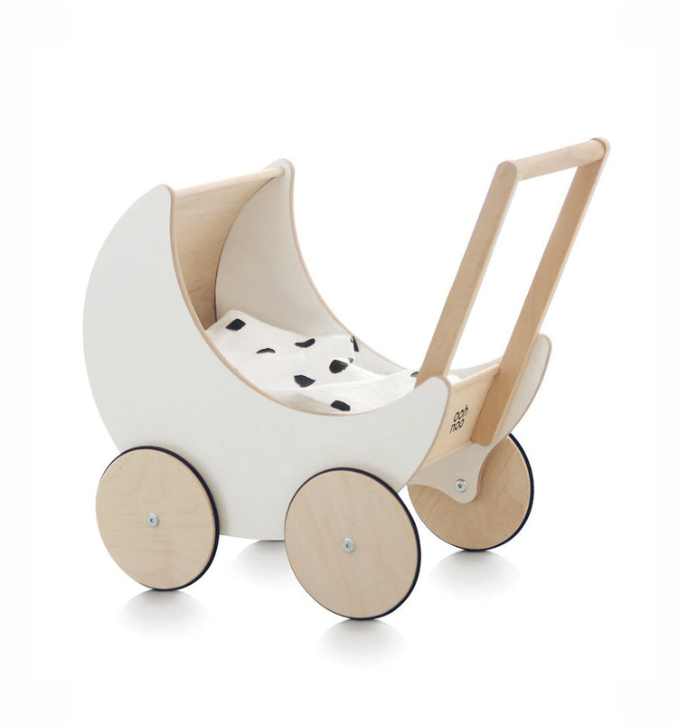 These wooden doll prams are the most popular, it's design is based on the outline of a crescent moon. The toddlers love them, but the design-loving mums adore them. It magically transforms any room into a natural and minimalistic space.