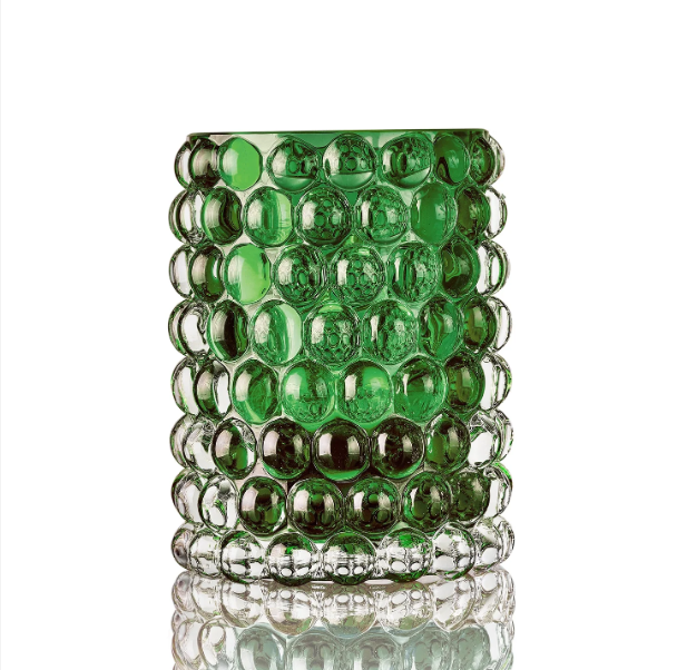 Experience the beauty and craftsmanship of the Green Bubble Vase. Hand-blown by Bohemia's best glassblowers, each lamp is unique with its own delicate optic pattern and shimmering light.