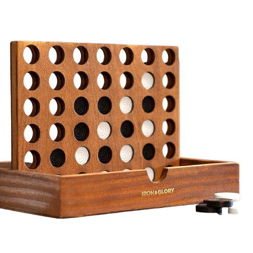 Challenge friends and family with this beautifully crafted wooden Connect 4 game, designed for both strategy and style.