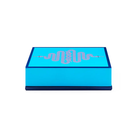 The lid features two intricately intertwined serpents, symbolizing transformation, power, and elegance, making it a conversation-starting accent for any cocktail table or curated game corner.