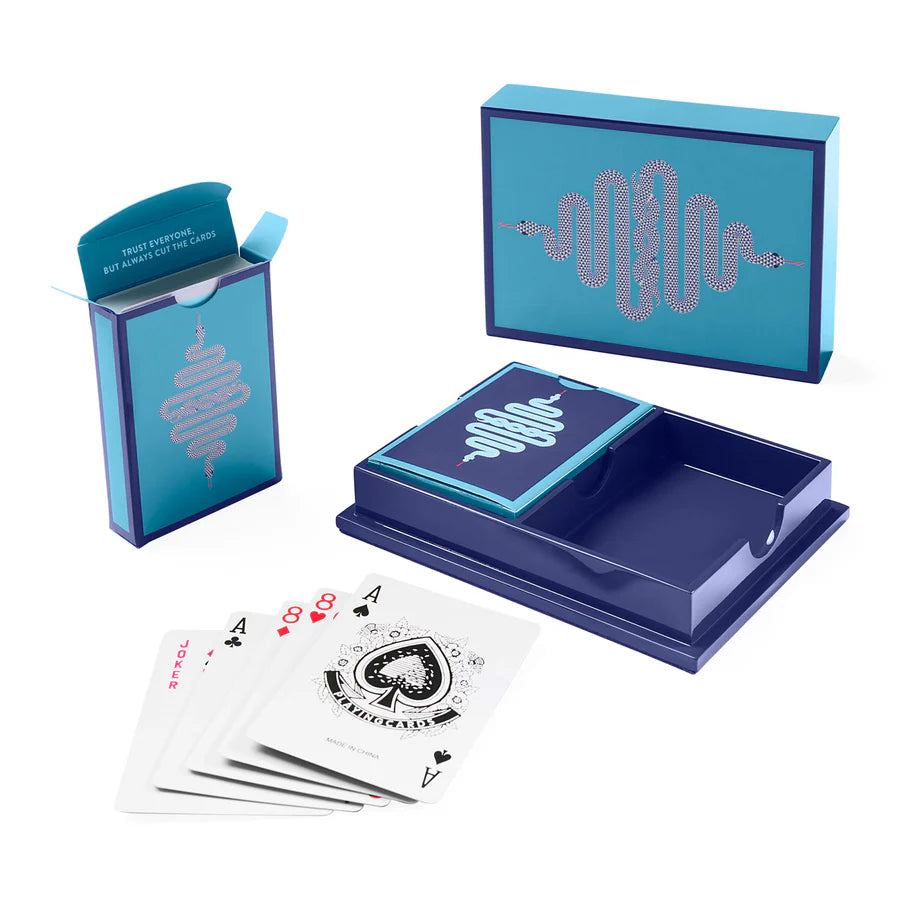 Inside, you'll find two standard decks of luxury playing cards, each one emblazoned with ravishing reptilian designs. Whether you’re hosting a high-stakes poker night or a casual round of rummy, these cards bring elevated flair to every move.