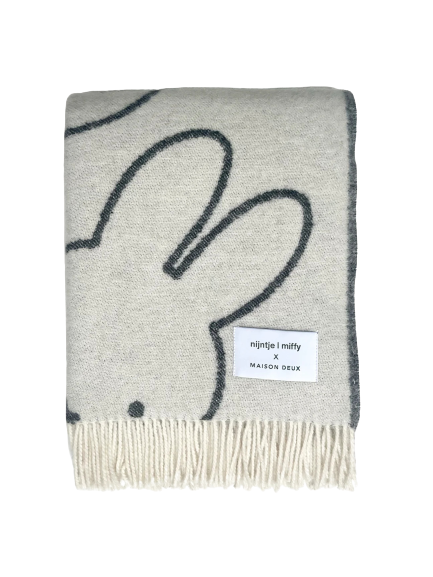 La manta Miffy Blanco Negro es un ejemplo de elegancia y artesanía. Está hábilmente tejida en jacquard con lana 100% de Nueva Zelanda y presenta flecos en los lados cortos.
