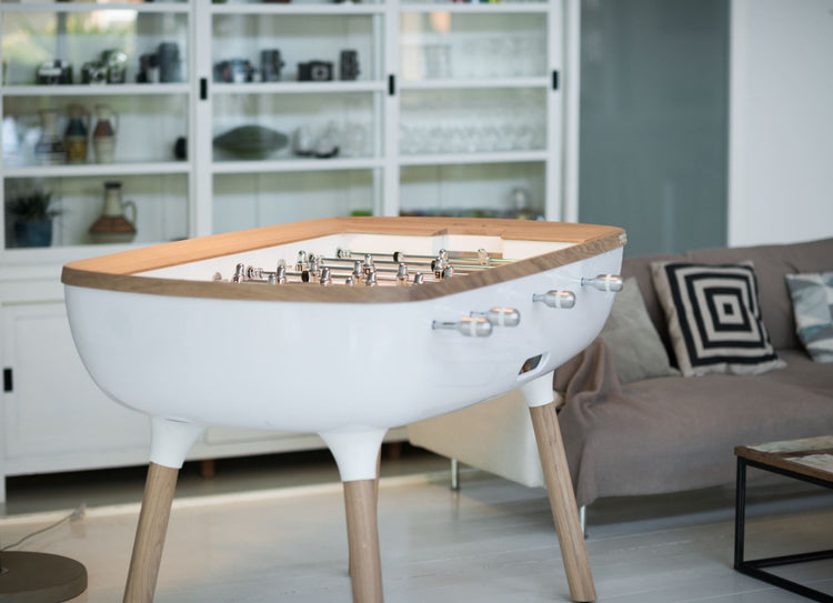 Although foosball is more of a traditional male object, the Pure design foosball succeeds in seducing women. All you have to do is enjoy your design table foosball.
