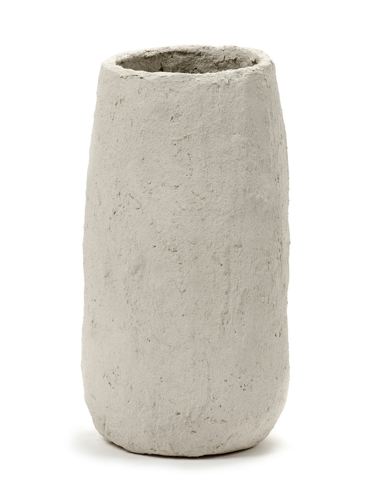 This tall Vase has a visible rough structure, made from paper mache the favourite material of the designer, Marie Michielssen.