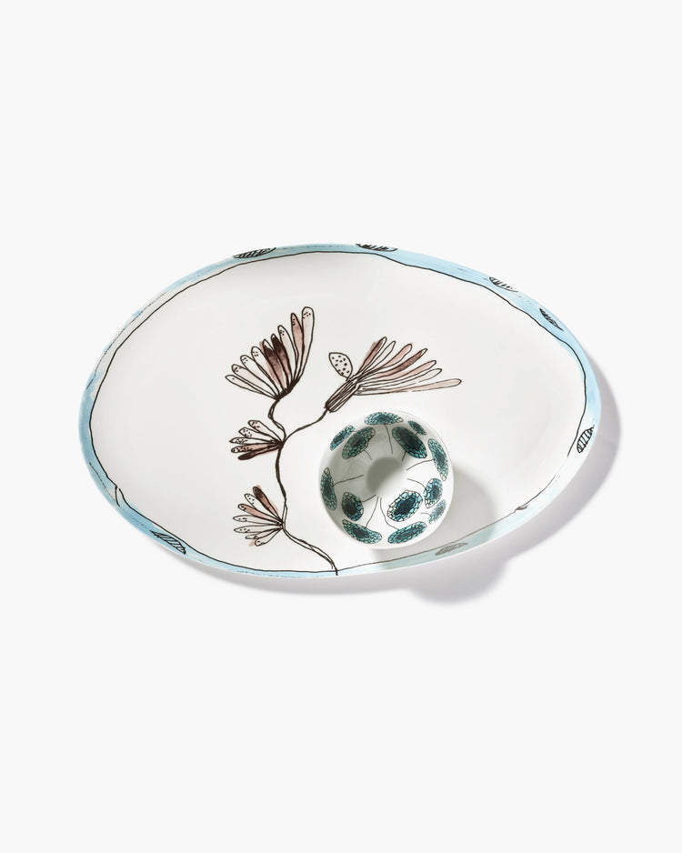 Spice up your dining table with Marni's Porcelain Oval Plates in Midnight Flowers. These elegant yet whimsical plates feature a beautiful floral design on a sleek porcelain surface. Perfect for adding a touch of personality to any meal.