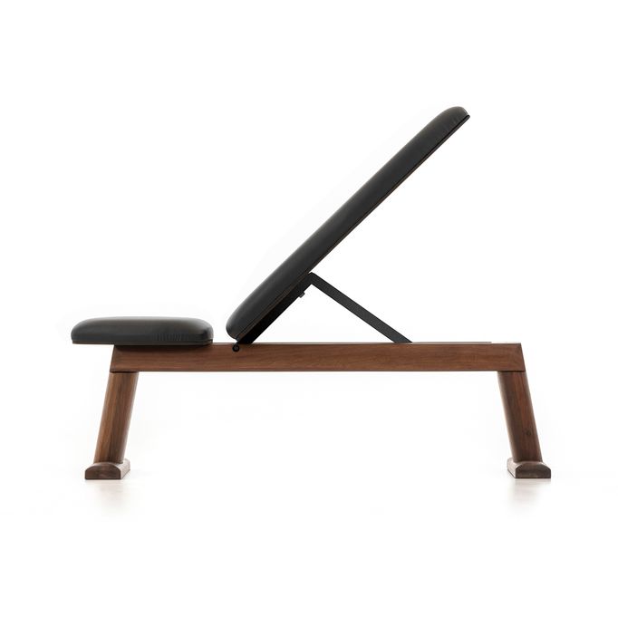 The solid wood frame impresses with its stability. It comes with a handcrafted leather seat bed giving the weight bench a solid character that fits into any room.