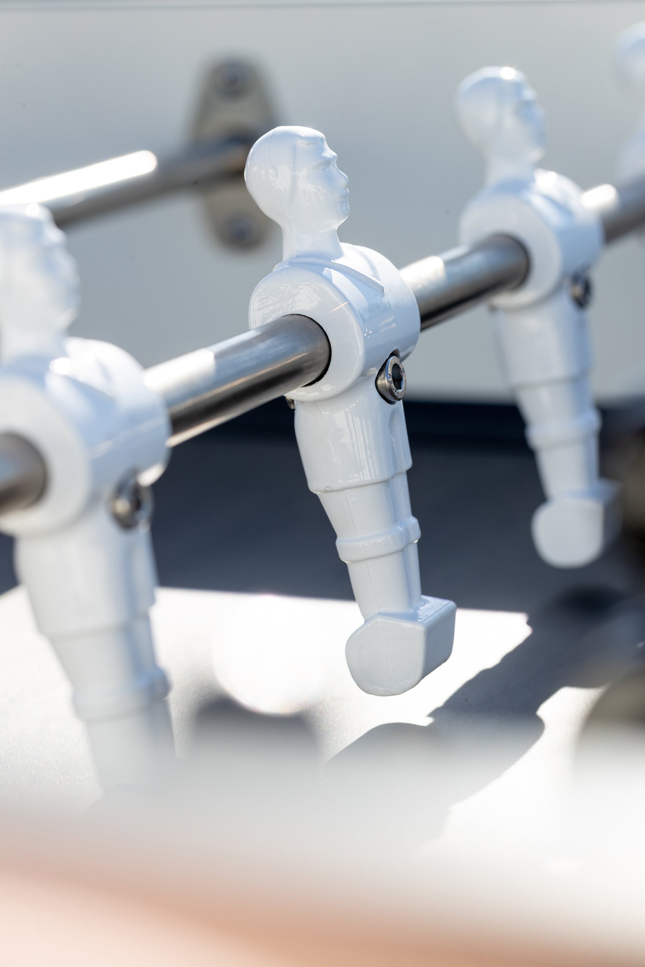 Exposure to sunlight can cause fading and deterioration of colors and materials. Outdoor foosball tables are treated with UV-resistant finishes that protect the surface from harmful sun rays, maintaining vibrant colors and preventing cracking or peeling. This fade protection is essential for preserving the table’s aesthetic appeal and playability over time, especially in sunny climates.