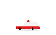 De candycar ambulance is een mini auto in een charmant rood en wit vintage design.