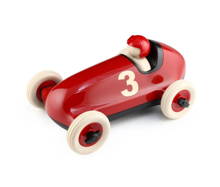 This unique racing car toy draws its inspiration from the classic cigar car racers. It is built using the finest quality materials to last a lifetime. The age recommendation is 3 years plus. This means this product is safety tested and recommended for children that are aged 3 years and above.