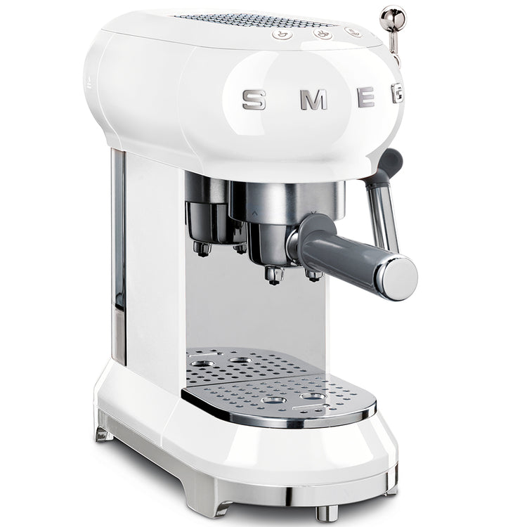 This unique design Smeg espresso coffee machine can be used both with ground coffee and beans, allowing Italian coffee lovers to choose their favorite roast and bring home the taste and aroma of an authentic espresso.
