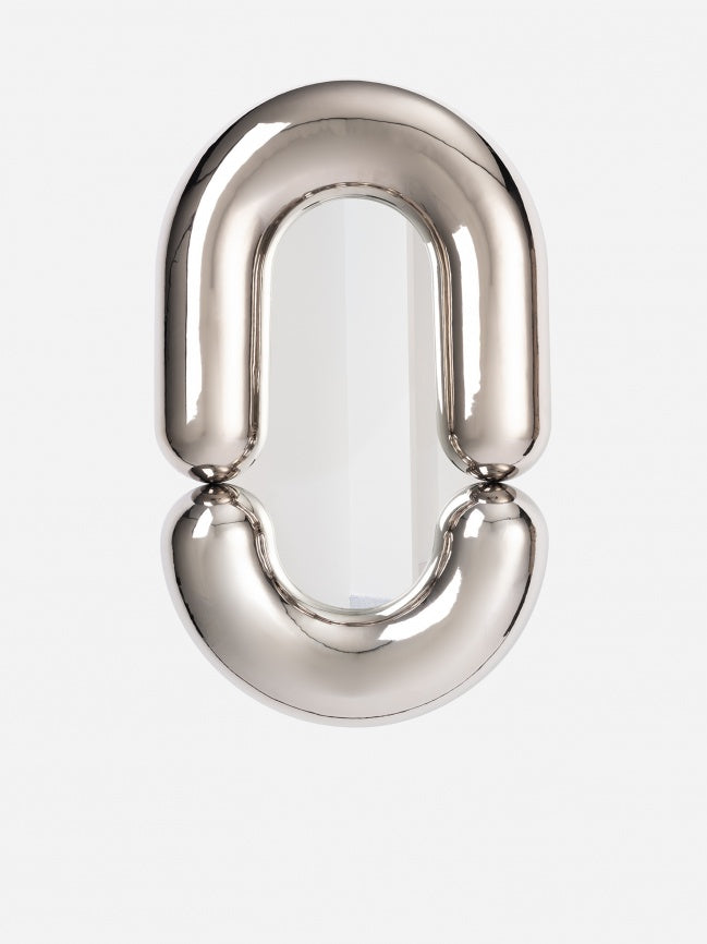 A medium decorative wall mirror designed by Jean-Baptiste Fastrez plays with its reflective surface to complete the "tube."
