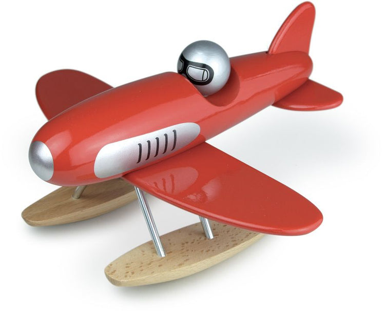 Made from shiny lacquered hard beechwood on a metal frame with wooden pontoons, our Wooden Plane Toy has a glossy colour body and silver pilot. This beautiful Wooden Plane Toy comes in two colours: Black and red.